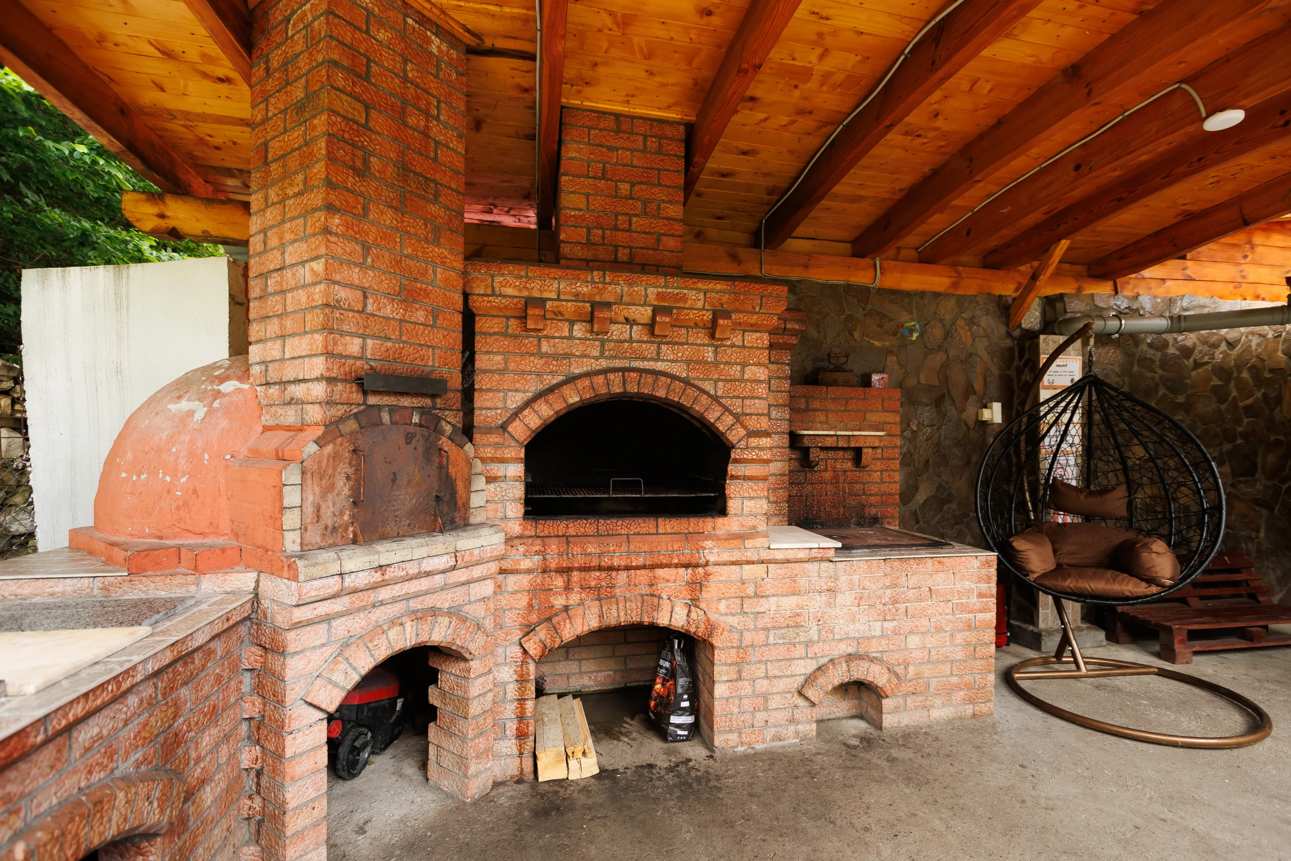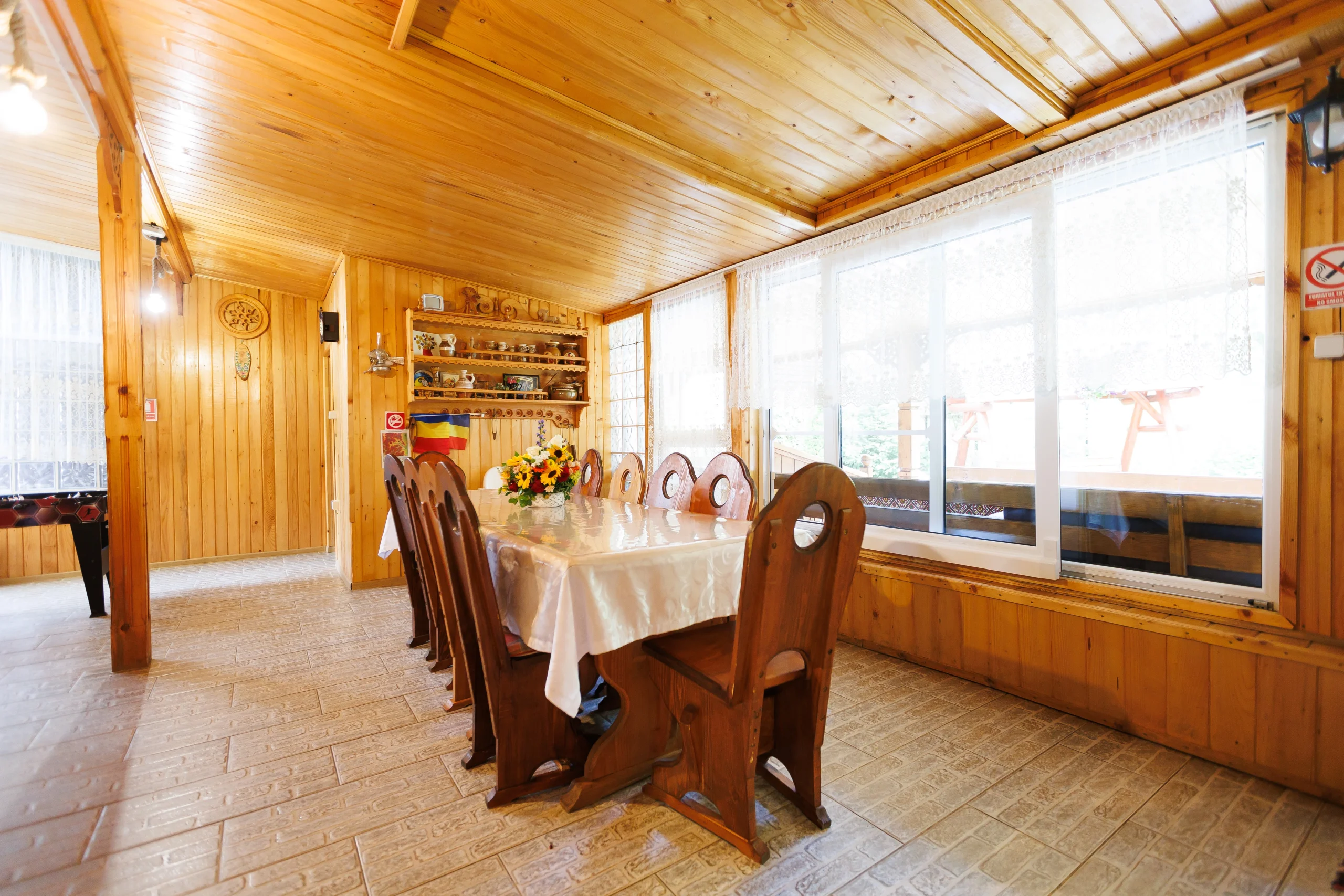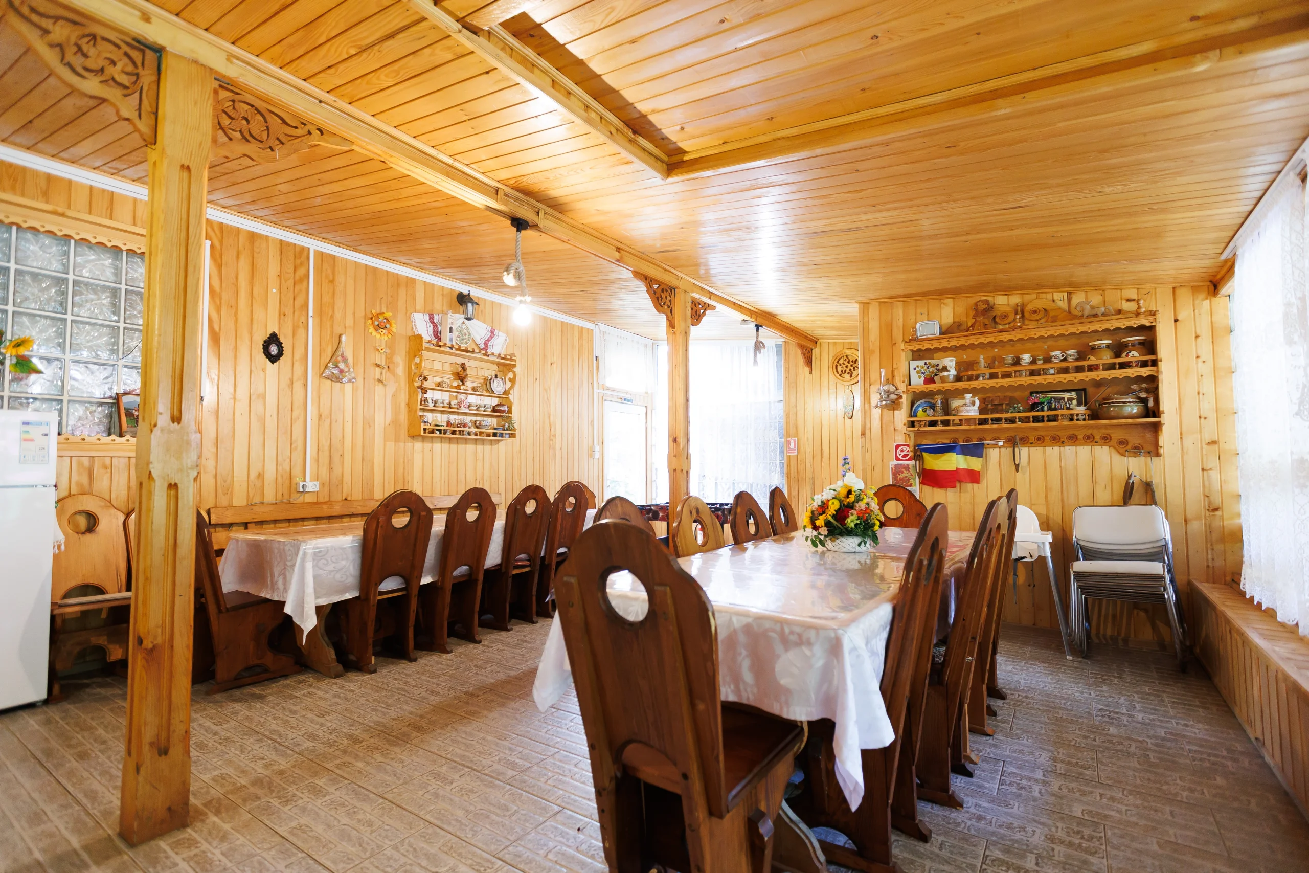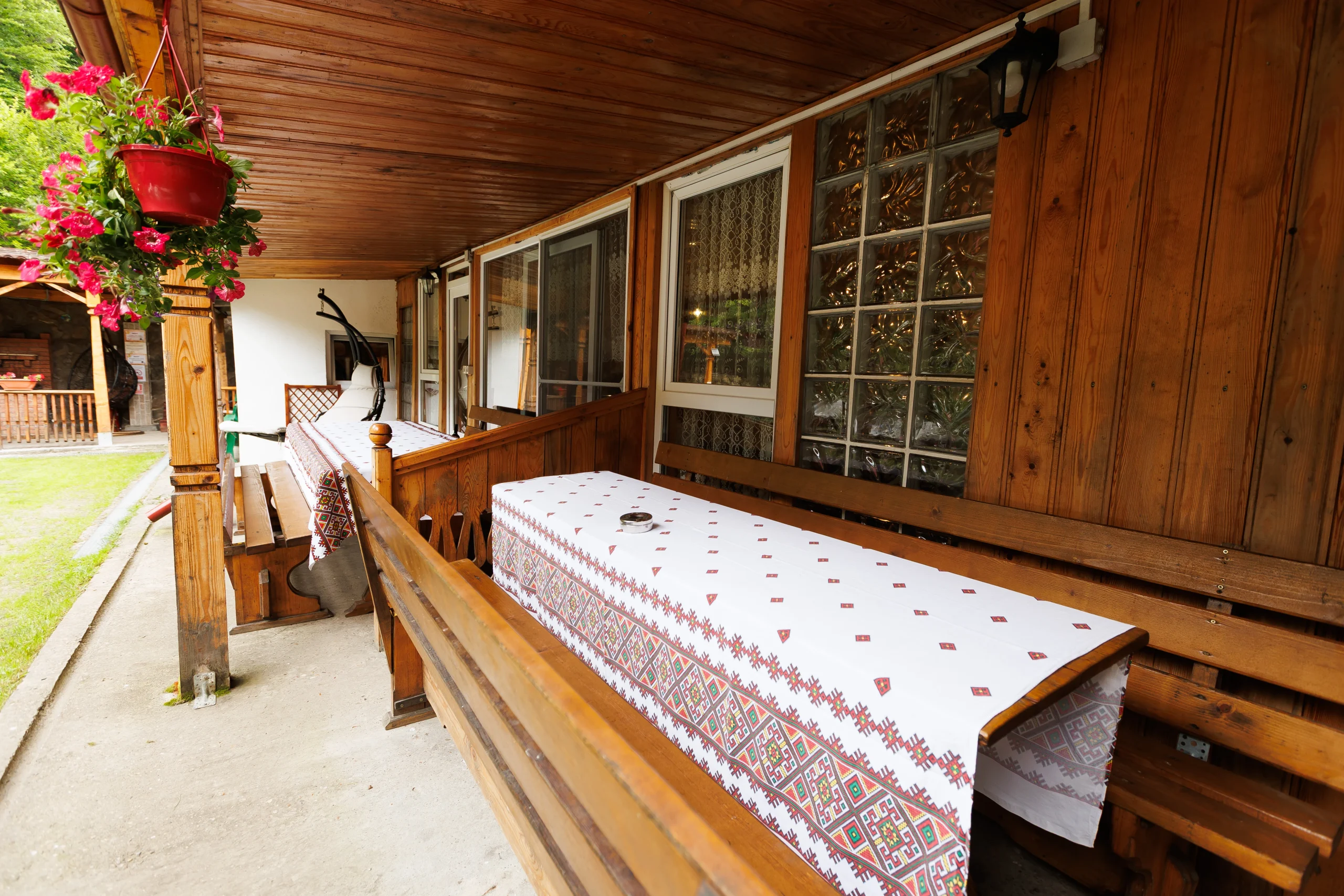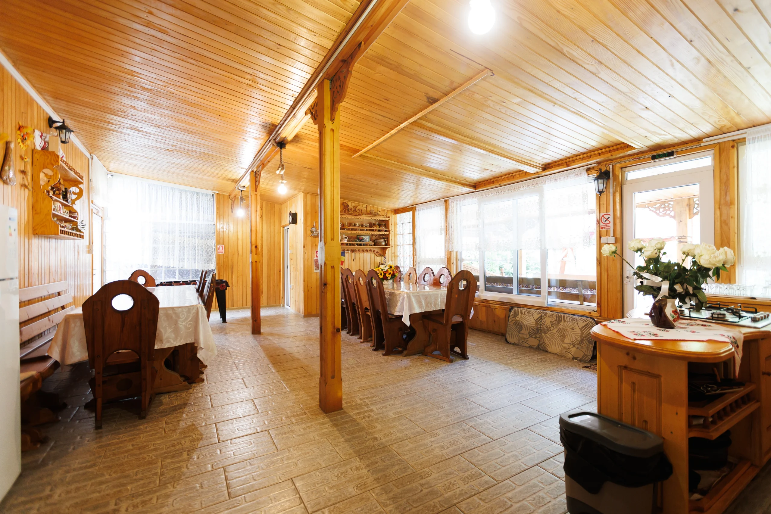 Foișorul cu grătar, leagănul, hamacul și curtea verde care te invită la relaxare în aer curat, în inima naturii din Lepșa, dar și terasa închisă care continuă armonios cu o sală de mese spațioasă și o bucătărie open-space, amenajate integral în stil tradițional din lemn, creând un ambient cald și primitor pentru seri petrecute alături de cei dragi